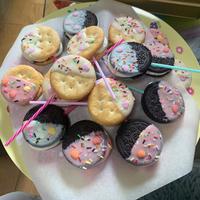 マシュマロの代わりにチョコをはさみました。かわいくできました!