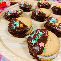 サクサクのビスケットとふんわりマシュマロの食感が絶妙なスイーツです。マシュマロを電子レンジで10秒温めると、とろけるような柔らかさになり、より美味しく仕上がります。子供と一緒に作れる簡単さと可愛らしさが魅力で、バレンタインのプレゼントにもぴったり。チョコレートはスプーンで塗ると綺麗に仕上がり、マシュマロの代わりにチョコをサンドするアレンジもおすすめです。甘さが気になる方は、マシュマロの量を調整してください。