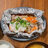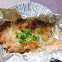 - 5 アルミホイルにサラダ油を塗り、4、2の順に乗せ、包みます。トースターで15分程、鶏もも肉に火が通るまで加熱し、小ねぎを散らして完成です。