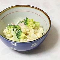 - 2 ブロッコリーは小房に切り分け、さらに半分に切ります。別の耐熱ボウルに入れ、ふんわりラップをかけ、600Wの電子レンジで2分程、やわらかくなるまで加熱し、粗熱を取ります。
