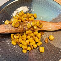 - 2 コーンバターしょうゆを作ります。同じフライパンを中火で熱して有塩バターを溶かし、コーンを入れ炒めます。焼き色がついてきたらしょうゆを入れ、全体になじんだら火から下ろします。