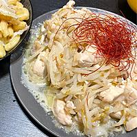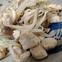 - 4 しんなりしてきたら2を入れ中火で炒め、鶏ささみに火が通ったらもやしを入れ中火で炒めます。