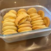 クッキー生地に餡を入れ過ぎると平らにする際に破れてしまいました。そのため、餡は作った半分量しか使用できませんでした。残りは次回作成まで冷凍保存にしました。
