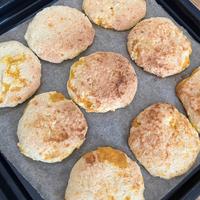 - 7 6を、クッキングシートを引いた天板に並べ、180度のオーブンで15〜20分ほんのり焼き色がついたら完成です。