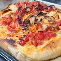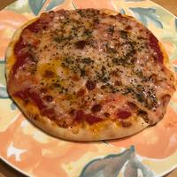リピです。学校が休校になり中学生の次男とおうちピザしました。生地が上手に伸ばせず 多少いびつですが おいしくいただきました~。😋🍴💕
