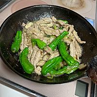 - 2 中火で熱したフライパンに鶏せせりを入れ、塩こしょうをふって炒め、色が変わってきたら1、ししとうを入れて炒めます。