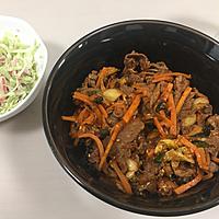 - 2 フライパンにごま油を中火で熱し牛肉を炒めます。色が変わってきたら人参入れてしんなりするまで炒めます。