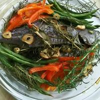 旬のイサキで作りました。ズッキーニではなく、インゲンで、ハーブソルトではなく岩塩で作りましたが、美味しかったです。ローズマリーが爽やか!見た目もキレイ。別の魚でも作ってみたいです。
