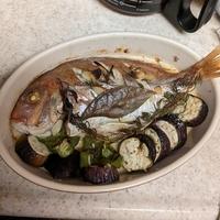 - 5 オリーブオイルを回しかけ、200℃で15分程焼き、タイに火が通ったら完成です。