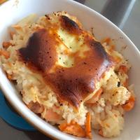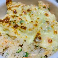 サーモンとネバネバのオクラを混ぜたごはんをドリア風に焼き上げた一品です。フライパンで一度焼き目を付けたサーモンの風味が香ばしく、オクラとチーズが絡んでおいしいですよ。少ない調味料で作れるのでとってもお手軽ですよ、ぜひ作ってみてくださいね。