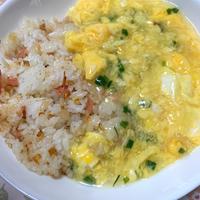 白ごはんに卵を混ぜ込んでチャーハン作りました。