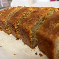 バターを10g、砂糖を20g減らして作りましたが、甘くしっとりした仕上がりでした。バナナとキャラメルの風味がほどよくて、プレゼントにもいいなと思いました。