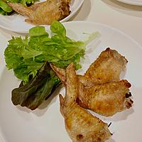 - 2 手羽先は関節を外して関節の周りの筋を切り除き、中の2本の骨を外します。(A)をふり、下味を付けます。