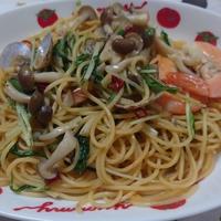 たっぷりあさりと水菜のボンゴレビアンコ レシピ・作り方