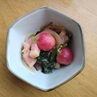 ラディッシュは、サラダ以外には思いつかなかったので、こちらのレシピを作ってみました。ベーコンがなくて、魚肉ソーセージで…