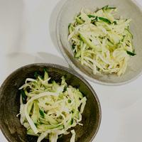 きゅうり1本使い、きゅうりとキャベツを塩もみしました。