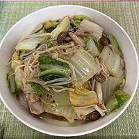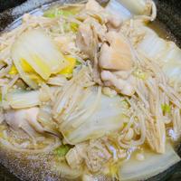 - 1 白菜は3cm幅のざく切りにします。えのきは根元を切り落とし半分に切り、ほぐします。