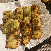 - 4 フライパンの底から1cm程の揚げ油を注ぎ、170℃に温めます。3に1をくぐらせて入れ、両面2分ずつ揚げ焼きにして、衣がカラッとしたら油を切ります。