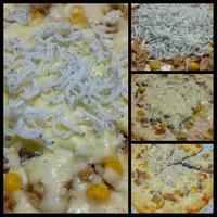 大きなピサ生地で、味噌の代わりにオーロラソース塗ってツナ、コーン、しらすで作りました。