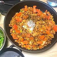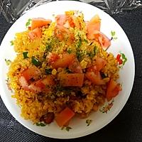 ご飯1合(約350)・ウインナーをベーコン1P・ピーマン1個・他そのまま。ちょっとスパイシーなケチャップライス的な感じ、美味しい✏️