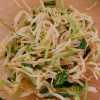 三つ葉なかったし豆もやし少量だったので調味料加減してみた、モヤシと白菜は湯がいて絞り混ぜた。