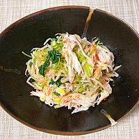 - 3 2を5cm幅に切ります。カニカマは半分に切ってほぐします。