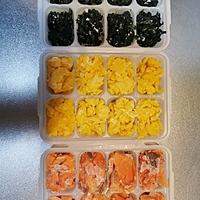 離乳食7、8ヶ月ごろ(中期)から始められる、鮭と卵黄と小松菜の3色ごはんはいかがでしょうか。7倍がゆに3種類のトッピングをすることで、味にバリエーションがうまれ、おいしくいただけます。赤、黄、緑と彩りもきれいな一品です。ぜひ、お試し下さい。