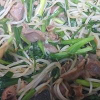 - 4 2を入れ中火で炒め、砂肝に火が通ったらもやしを加え炒めます。