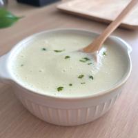 小ぶりのじゃがいも4個合計300g、水400、牛乳200、豆乳100、コンソメキューブ2個、オリーブオイルの代わりにバターを1かけ(8g)で作りました。最初バターでたまねぎのみじん切りを透明になるまで炒めてからじゃがいもを加えて混ぜました。ミキサーは持っていないので、かわりにマッシャーで問題なくできました。個人的にはもうミルク感が強く、じゃがいもの感じが少なかったので、次回はもう少しじゃがいもの量を増やそうと思います♪2021.7.27