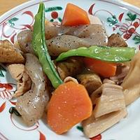 さつまいもを追加、更に栗の甘煮で余っていたシロップも使い、秋の味覚満載の煮物になりました。