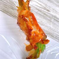 - 5 サラダ菜を敷いた皿に盛り付けたら完成です。
