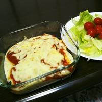 ミートソースが余っていたので、レシピ通りではないのですが、焼き茄子とカボチャ(チンしたやつ)を底にいれて作りました。美味しかったです。