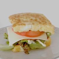 甘いフレンチトーストに、具材をたっぷり挟んだサンドイッチです。卵液の染み込んだ甘い生地と塩気のチーズやベーコンがマッチし、食欲をそそる1品です。見た目華やかでおもてなしにもオススメです。是非、お試し下さいませ。