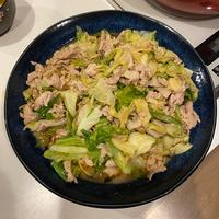 豚もも肉が300g弱、キャベツだけだと物足りないので、ピーマン3個と玉ねぎ1個もプラスして調味料は1.5倍にしましたが少し薄めでした。