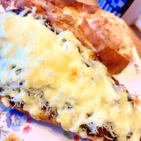 バゲット で作りました。材料乗せる前と乗せた後の二段階焼きをし パリッパリでいただきました。 海苔とシラスの磯の風味と塩味がチーズとパンに丁度良く合い とても美味しくいただきました。