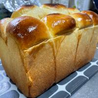バターの芳醇な香りが部屋中に広がる贅沢な食パンです。生地は捏ねる時にまとまりにくい特徴がありますが、しっかり捏ねることでふわっふわのもっちり食感に仕上がります。焼き色がつきやすいため、10-15分程度で表面にアルミホイルをかけるのがポイント。甘さ控えめで濃厚なミルクの風味も楽しめ、家族からの評価も上々です。パウンド型やケーキ型で手軽に作れます。