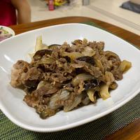 春雨を食べない家族がいるので春雨は使わず、牛肉を豚肉ロースに代えて作りました。玉ねぎの甘味に味のしみたなすが食欲を加速させました。