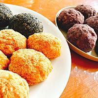 糖質制限してるのにまた作ってしまった。。甘さ、もちっと感、懐かしさで癒されます。黒ごまは少し塩をかけました。きなこは抹茶無しが好みです。