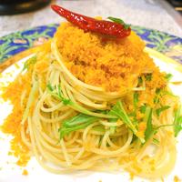 カラスミ少なかったかなぁ?小松菜で代用しました。