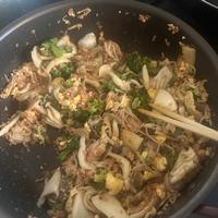フライパンの中から失礼します。ブロッコリー一個しめじ一個エノキ一個、エリンギ1パック。卵2個、シャケフレーク多め。しょっぱい。鶏ガラいらない。微妙な味。バター入れてみたけど今夜はこれで我慢だ。2度と作らない。