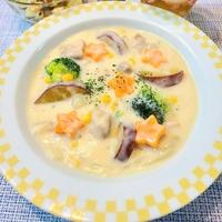 優しい甘さの鶏とさつまいものシチューはいかがでしょうか。さつまいもとコーンも甘味がおいしいシチューに仕上がりました。市販のルーを使って作るよりあっさりとしていておいしいですよ。寒い日のごはんにぜひお試しくださいね。