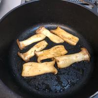 - 3 エリンギがしんなりしてきたら(A)を入れて中火で炒め、ラー油を入れて軽くなじませます。