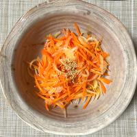 にんじんと玉ねぎのシンプルな組み合わせがさっぱりと爽やかな味わいを生み出します。玉ねぎは水にさらすことで辛みが消え、にんじんは茹でることで食べやすい食感に。時間とともに玉ねぎから自然な甘みが溶け出し、酢の爽やかな酸味とオリーブオイルのコクが溶け合います。ブラックペッパーをたっぷりかけたり、ごま油や蜂蜜を加えてアレンジも楽しめる、冷蔵庫で寝かせるほどに美味しくなる一品です。