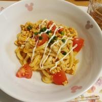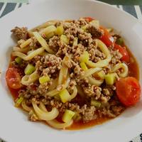 トマトとひき肉の旨辛焼うどん レシピ・作り方