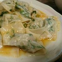 本当はワンタンですが、餃子の皮が余ってたのでそちらで作りました。正直タレが餃子の皮に負けてしまい、あんまり味がしませんでした(^^;