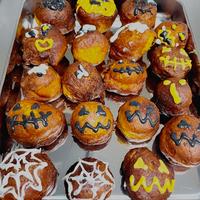材料3つで作れる、ハロウィンにぴったりかぼちゃのドーナツのご紹介です。ふんわりとしたホットケーキミックスの食感とかぼちゃのやさしい甘さがサクフワのドーナツとよく合い、おいしいですよ。チョコレートペンで描いたかわいい顔のジャック・オ・ランタンはハロウィンにぴったりです。ぜひお試しくださいね。