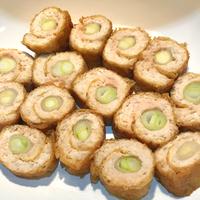 4人前作りました。油揚げは厚めの物を使ったのでつくねだねはやや少なめにしました。残り物のちくわも巻いてみました(写真撮り忘れ😓)長ネギの甘味が味付けと調和し、ジューシーな油揚げにつくねが最高~🎶とても美味しかったです。
