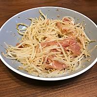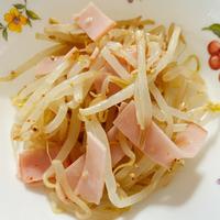 家にあったハムに、お前は生ハムだと暗示をかけながら作りました。細めに切るともやしによく絡んで美味しい。