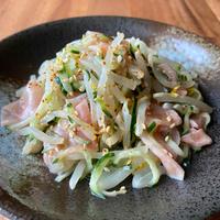 - 2 しんなりしていたら、水気を取って、細切りにした生ハムと残りの調味料と混ぜて完成です