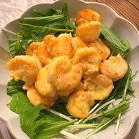 中華料理でおなじみのエビマヨはいかがですか。エビマヨソースがからんだプリップリのエビが美味しいですよ。エビマヨソースに卵黄を使うレシピなので、鮮やかな黄色が華やかな一品に仕上がります。ぜひ作ってみてくださいね。